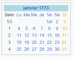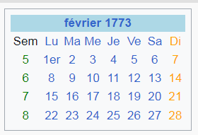• 21 janvier: Alexis Piron, 83 ans, poète et dramaturge français (°9 juillet 1689)