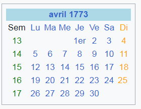 • 24 avril: Andreas Peter Bernstorff (1735-1797) est nommé ministre des Affaires étrangères au Danemark (1773-1780 et 1784-1797).